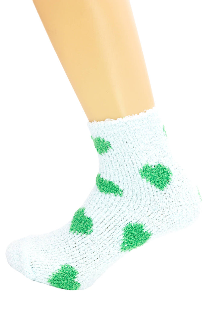 Adult's Heart All-Over Print Fuzzy Sherpa Fleece Indoor Cozy Lounge Mid-Crew Quarter Socks -Dimensions: Appx: 12" * 4 " * 1" - (Appx. US Women's 6 - 8.5) -90% Polyester, 10% Spandex