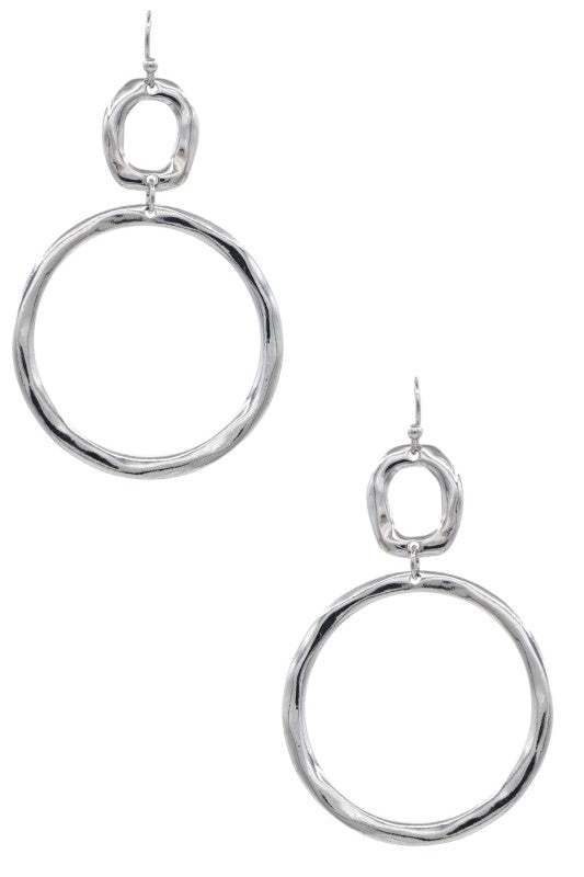 Metal circle 2-layered dangle earrings Length: 2 1/2" Fish hook ear wire