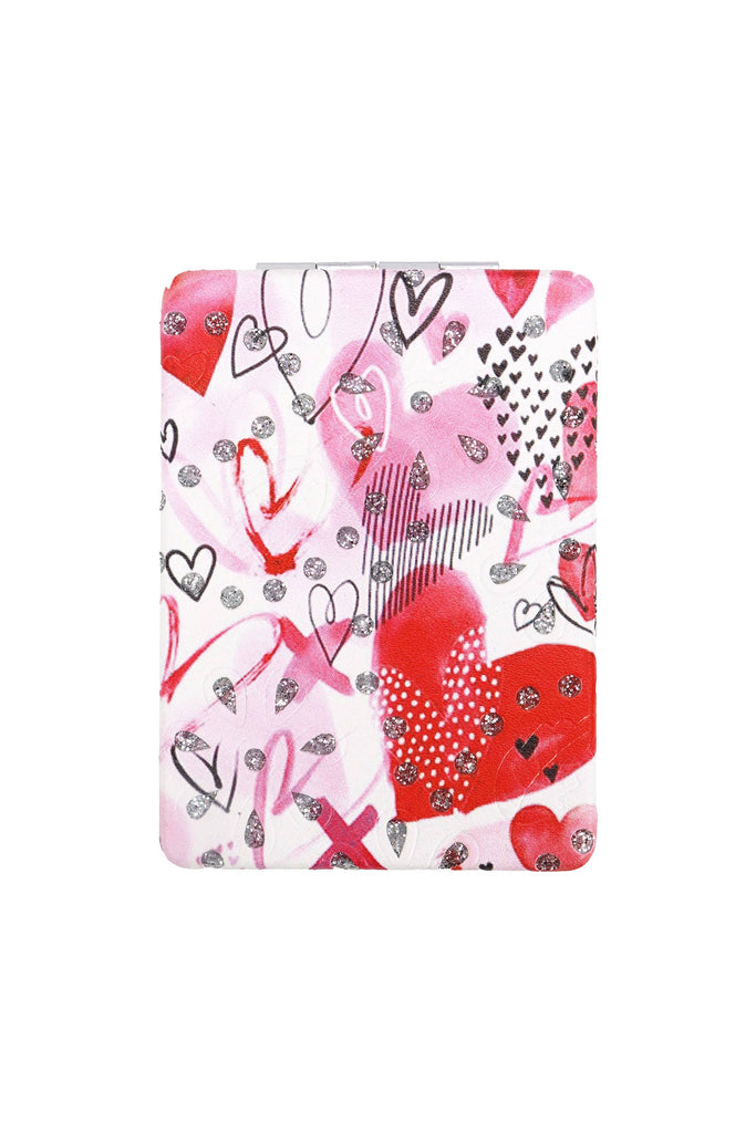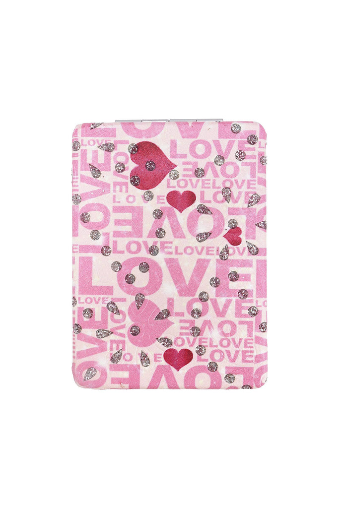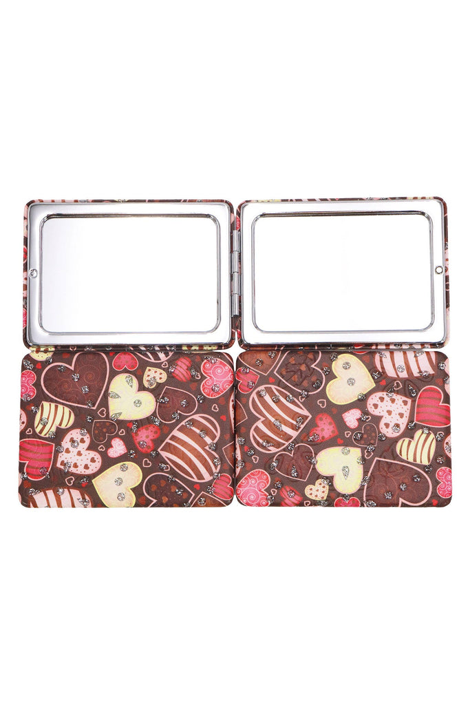 Valentine's Day Love and Chocolate Glitter Print Rectangular Compact Travel Size Makeup Cosmetic Mirror -Dimensions: 3.5" * 2.5" * 0.3" -Two Mirrors Present 2x and 1x Magnification