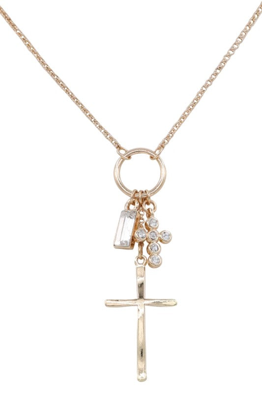A sleek and timeless piece featuring a delicate metal cross charm on a simple chain. Length: 16" + 3" ext