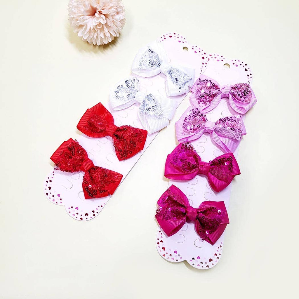 4 piece assorted hair bow sets as one pack 3.125 inches Valentine's Day