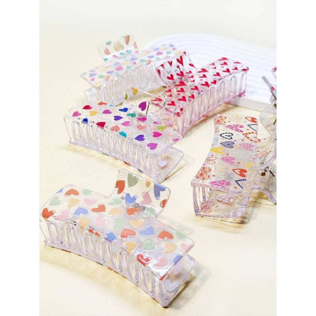 Assorted Heart Printed Hair Claw Clips Size- 3.5 Inch X 1.8 inches Wide