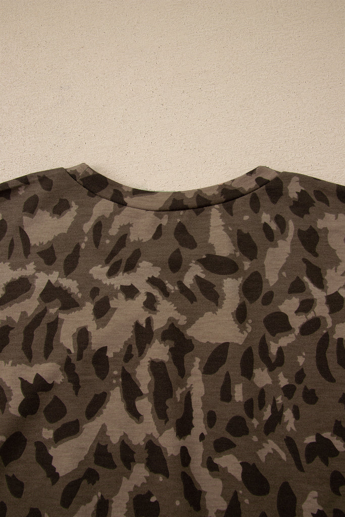Brown Leopard Print Raw Seam Patchwork Pullover Drawstring Loose Pant Set